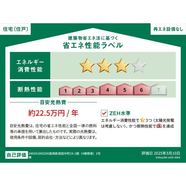 | エネルギー消費性能 | ★★★(削減率20%達成) | 断熱性能 | 6段階/7段階中 |