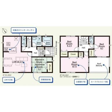 | 設備 | カウンターキッチン システムキッチン 床下収納 モニタ付インターホン カードキー ディンプルキー 防犯カメラ 複層ガラス 浄水器 3口以上コンロ 浴室暖房 浴室乾燥機 プロパンガス 庭 ルーフバルコニー 人感センサー付照明 火災警報器(報知機) 温水洗浄便座 トイレ2ヶ所 | ||
