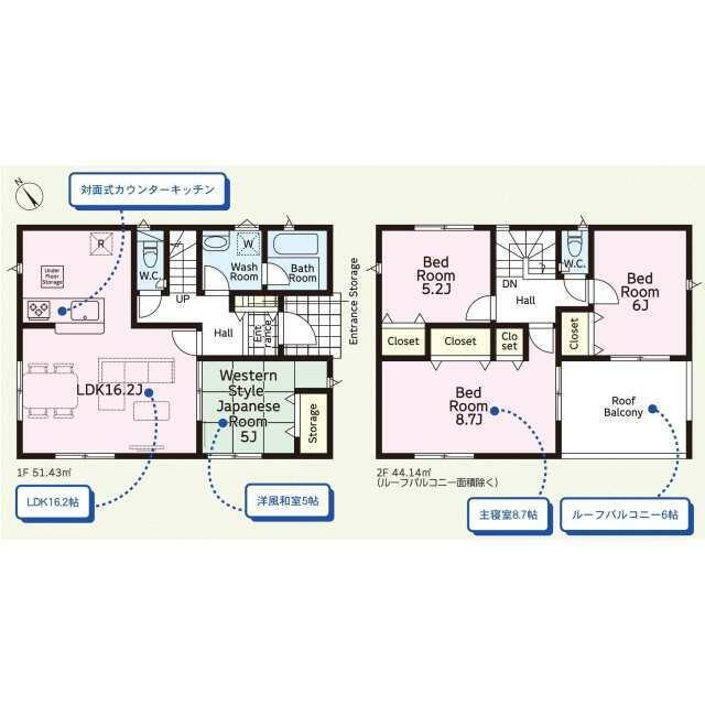 号棟番号:3号棟 2条区域 土地面積に協定通路部分(路地状部分)約60.25平米含 建物面積に別途ルーフバルコニー約9.72平米有 カースペース2台(車種による) |